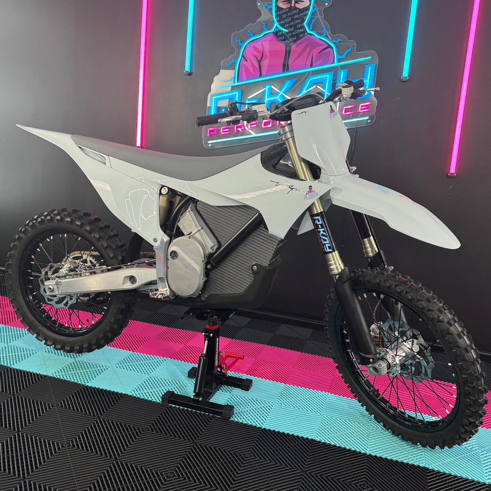 At R-Kay Performance we are thrilled to offer this insane brand new stark varg alpha available in both 60 and 80bhp. The Stark VARG delivers an incredible 938Nm of torque on the rear wheel and the carbon fibre sleeve motor spins at up to 14200rpm. With 30% more power than a traditional 450 combustion bike, the Stark VARG outperforms all other bikes on the market🥇