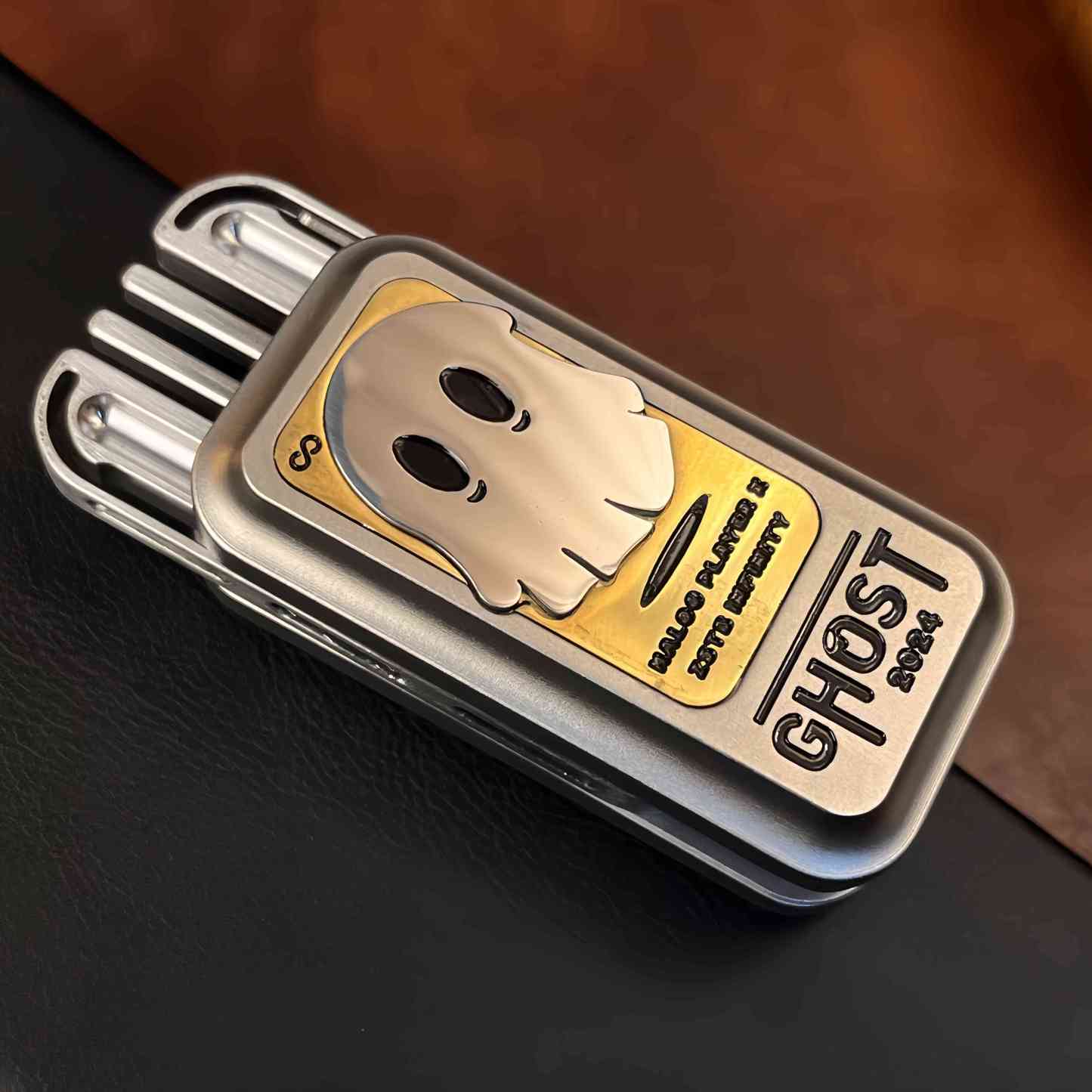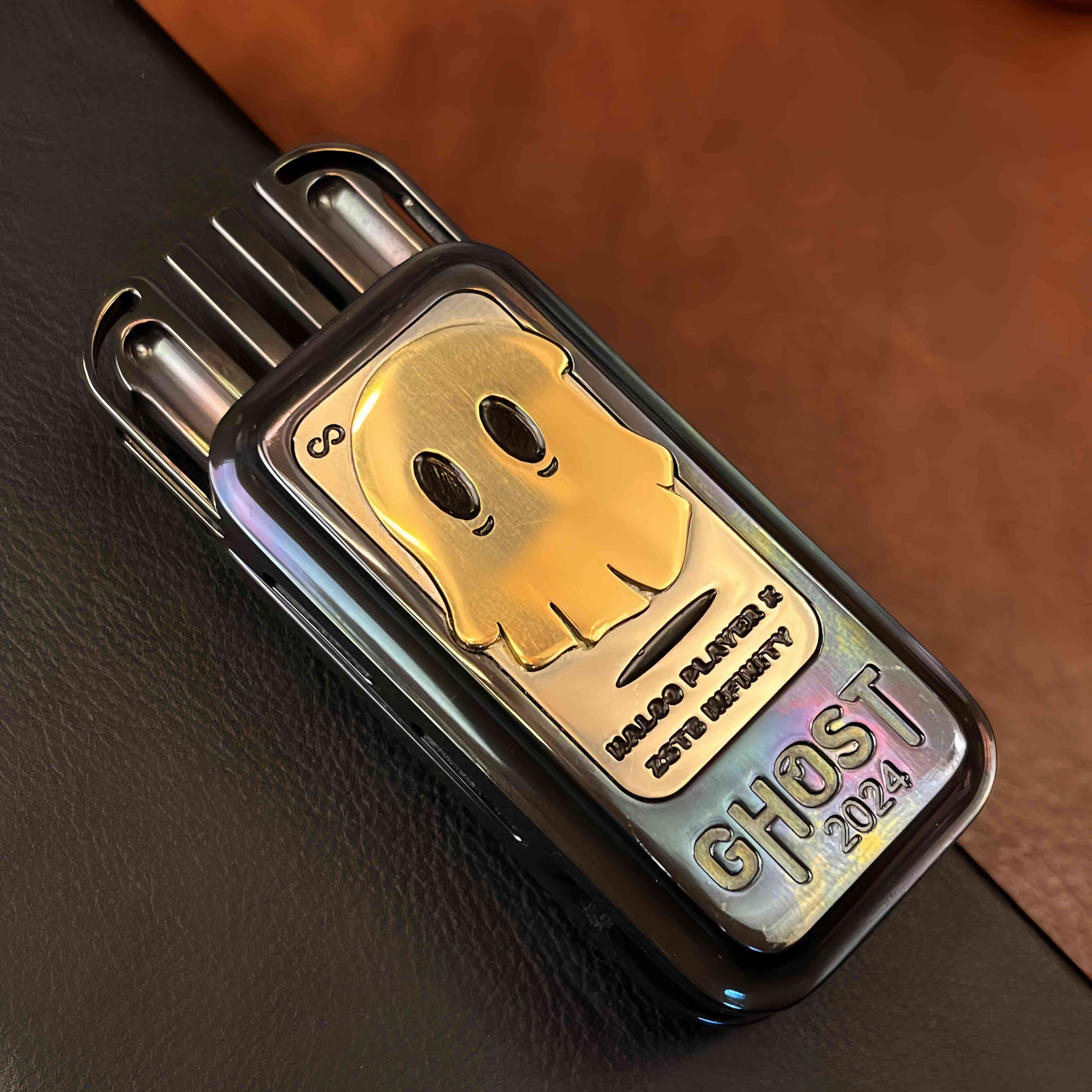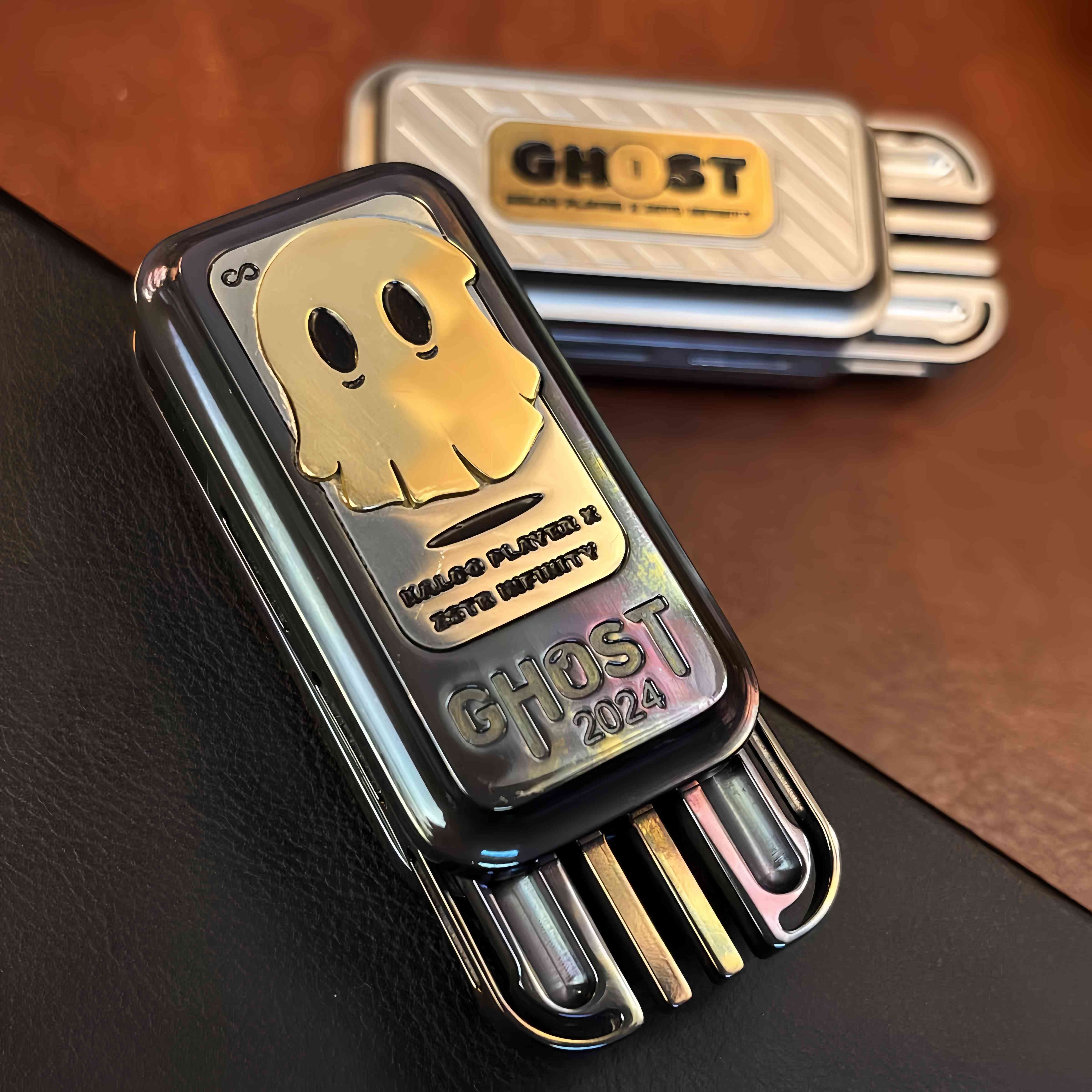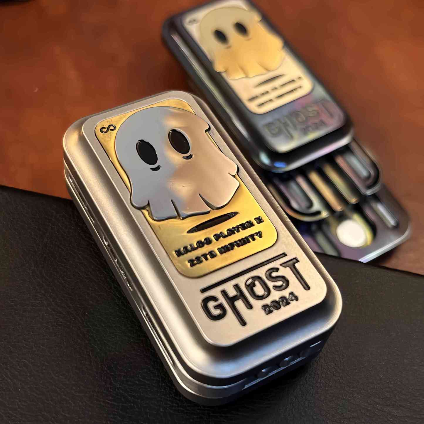 The Ghost Block Slider is a stylish and functional fidget toy featuring a mysterious ghost pattern on its surface, adding a touch of personality. It is available in stainless steel and zirconium alloy versions, offering distinct textures and a premium feel. With a precision tuning fork mechanism inside, each push produces a crisp, resonant "ding" sound that echoes, delivering an exquisite auditory experience.