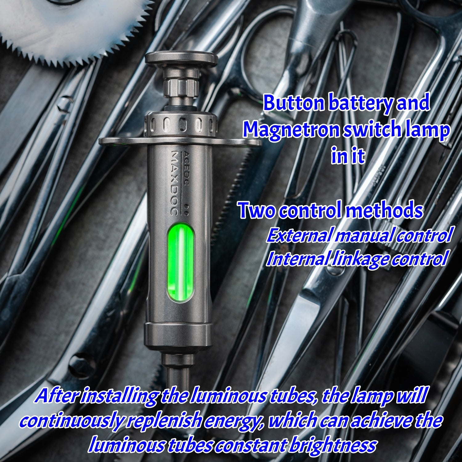 The product inspiration comes from Cyberpunk 2077. MACDOC is a portable first aid device in the game. ACEDC designed it as an EDC. It is a slider, a spinner, a tool, and also a desktop ambient light.