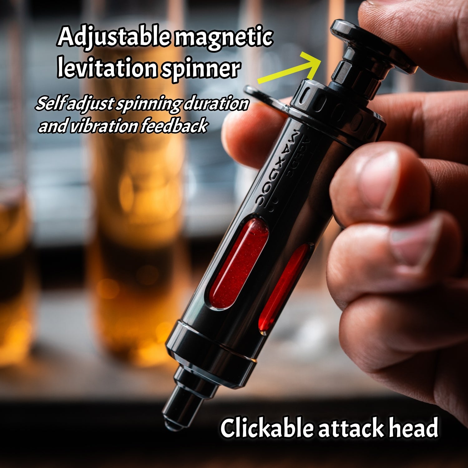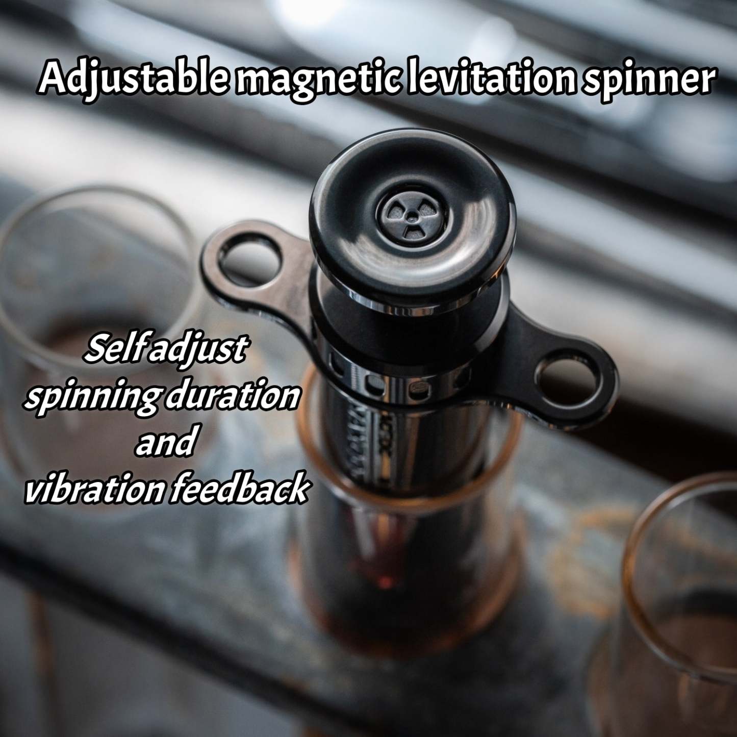 The top of the piston is an adjustable magnetic levitation spinner. You can adjust spinning duration and vibration feedback by rotating the nut below.