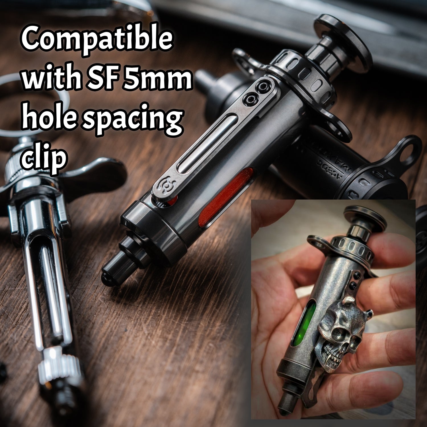 The clip adopts a universal standard of 5mm hole spacing. Compatible with Steel Flame 5mm clip. But after replacing the SF clip, the launch mode may not be available.