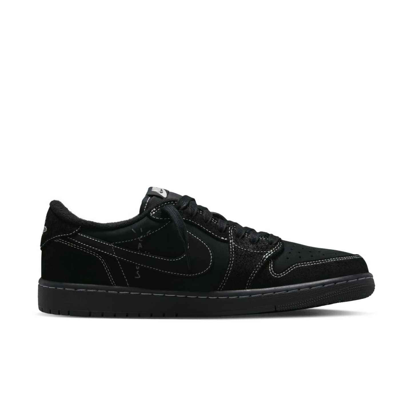 Make a bold statement with the Jordan 1 Retro Low OG SP Travis Scott Black Phantom. With careful attention to detail, these eye-catching kicks feature a black nubuck upper, tonal suede overlays, and unique contrast white stitching throughout. This upper is finished off with signature details like the reverse Swoosh on the lateral side, traditional Swoosh on the other side accompanied by Cactus Jack branding plus mismatched heel tabs displaying a retro Wings logo on one and an embroidered bee motif on the other. The low-top style is mounted on a black rubber cupsole with stitched sidewall construction and encapsulated Air-sole cushioning for unbeatable comfort. Take your look to the next level with these standout shoes as part of any ensemble.