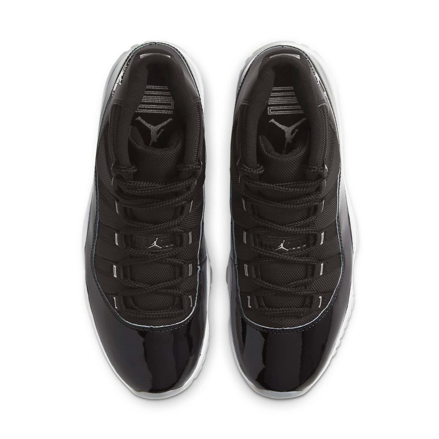 Nike Air Jordan 11 Retro “Jubilee 25th Anniversary ” dressed in Black, Sliver color scheme with a metallic silver Jumpman. The JORDAN on the eyelets and the classic glossy patent leather in piano black.