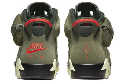 Dressed in military green nubuck, the Nike Air Jordan 6 "Medium Olive" is the third collaboration between Nike and rapper Travis Scott. The pair introduces stylish details such as cargo pouches around the collar, glow-in-the-dark outsoles and vibrant red lace locks.