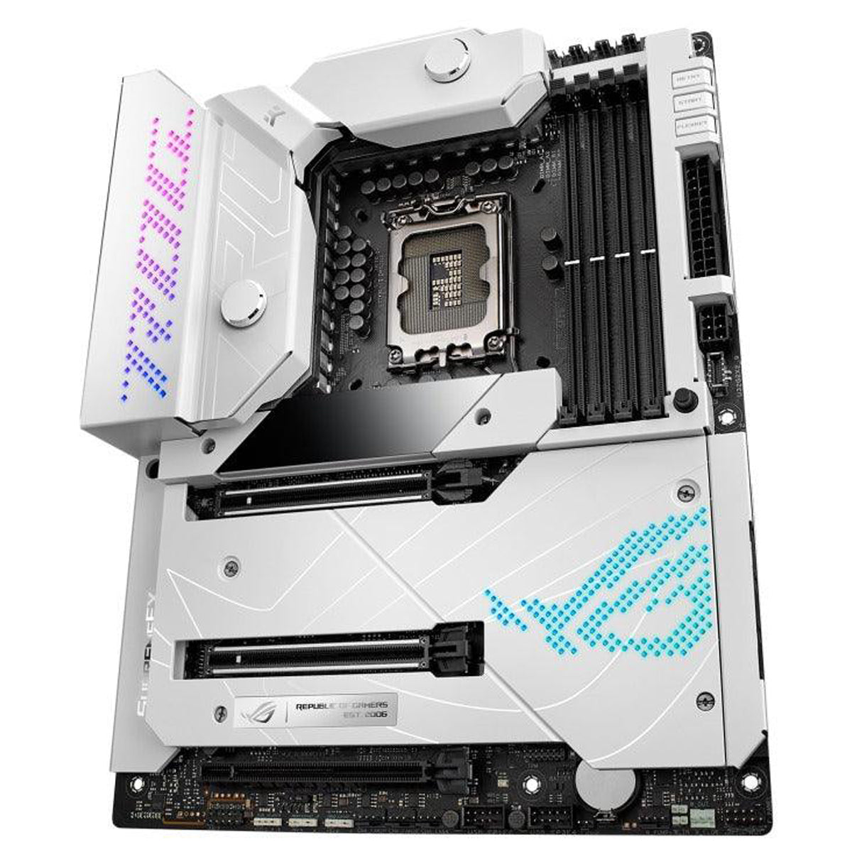 - Optimized Thermal Design: Enlarged VRM heatsinks with EK CrossChill III solution, high-conductivity thermal pads, triple M.2 heatsinks and two M.2 backplates, and ROG Water-Cooling Zone