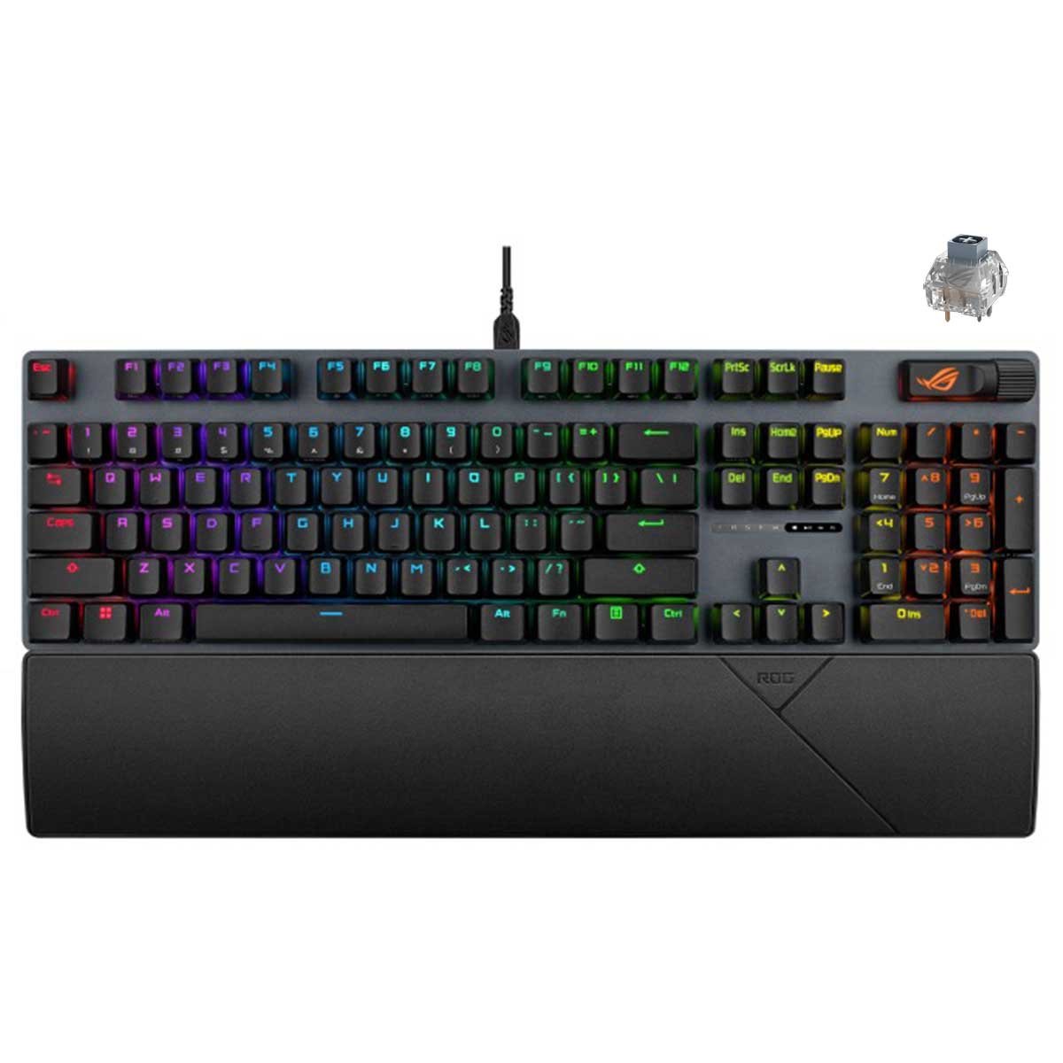 - Unique ROG-themed space bar: UV-coated spacebar with special ROG markings and three underside RGB LEDs