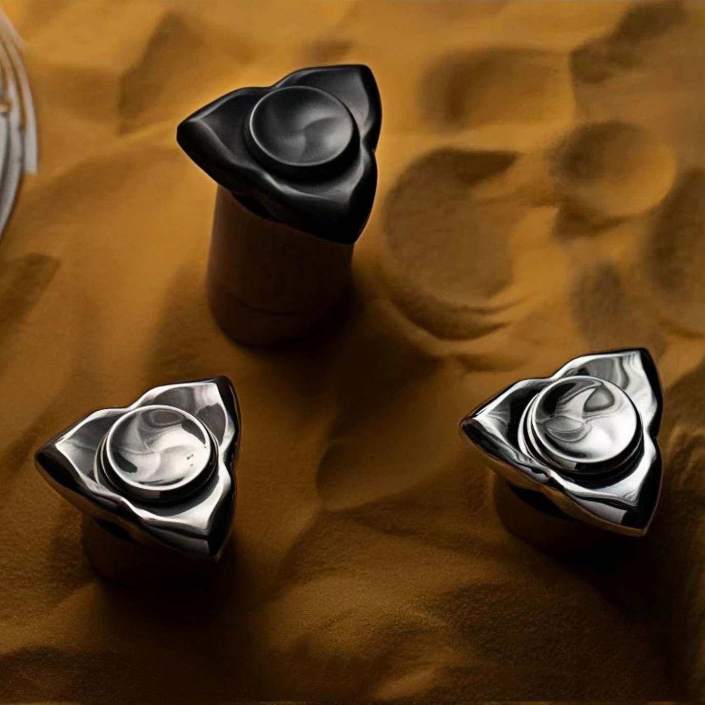 Mirage is a fully curved spinner. The appearance is thick, round, and very compact. The lines are agile and dynamic. The thick body combined with an ethereal heart makes the sound of spinning dramatically amplified, like the howling of wind and sand. The main body's line design draws inspiration from the style of Islamic architecture. Inheriting the design philosophy of BB Studio, which has always been based on architectural aesthetics as the aesthetic foundation.