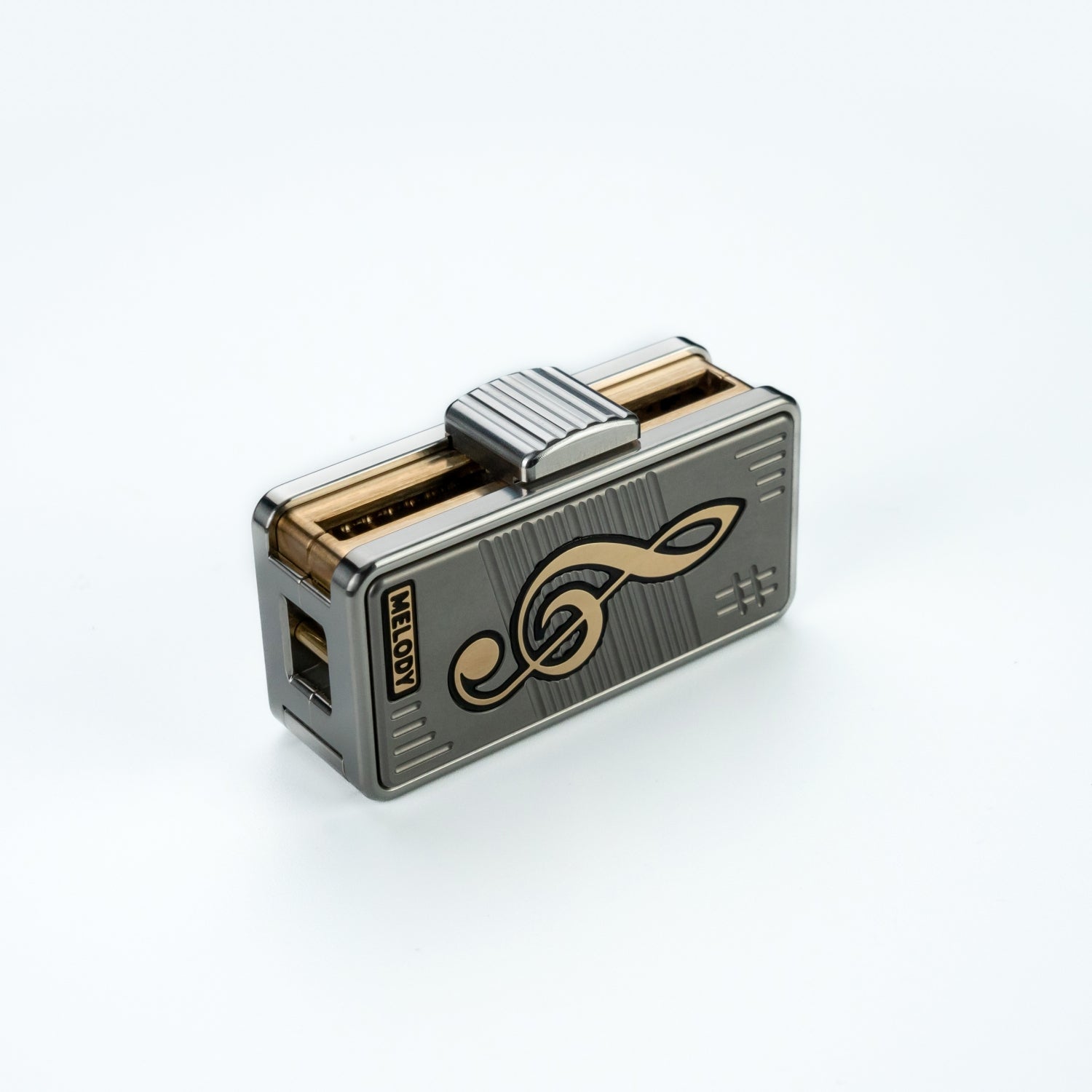 MELODY is a mechanical scale slider built in scale device. Push the button, the sound coming out of each grid is different. After precise tuning, these sounds form a complete octave scale.