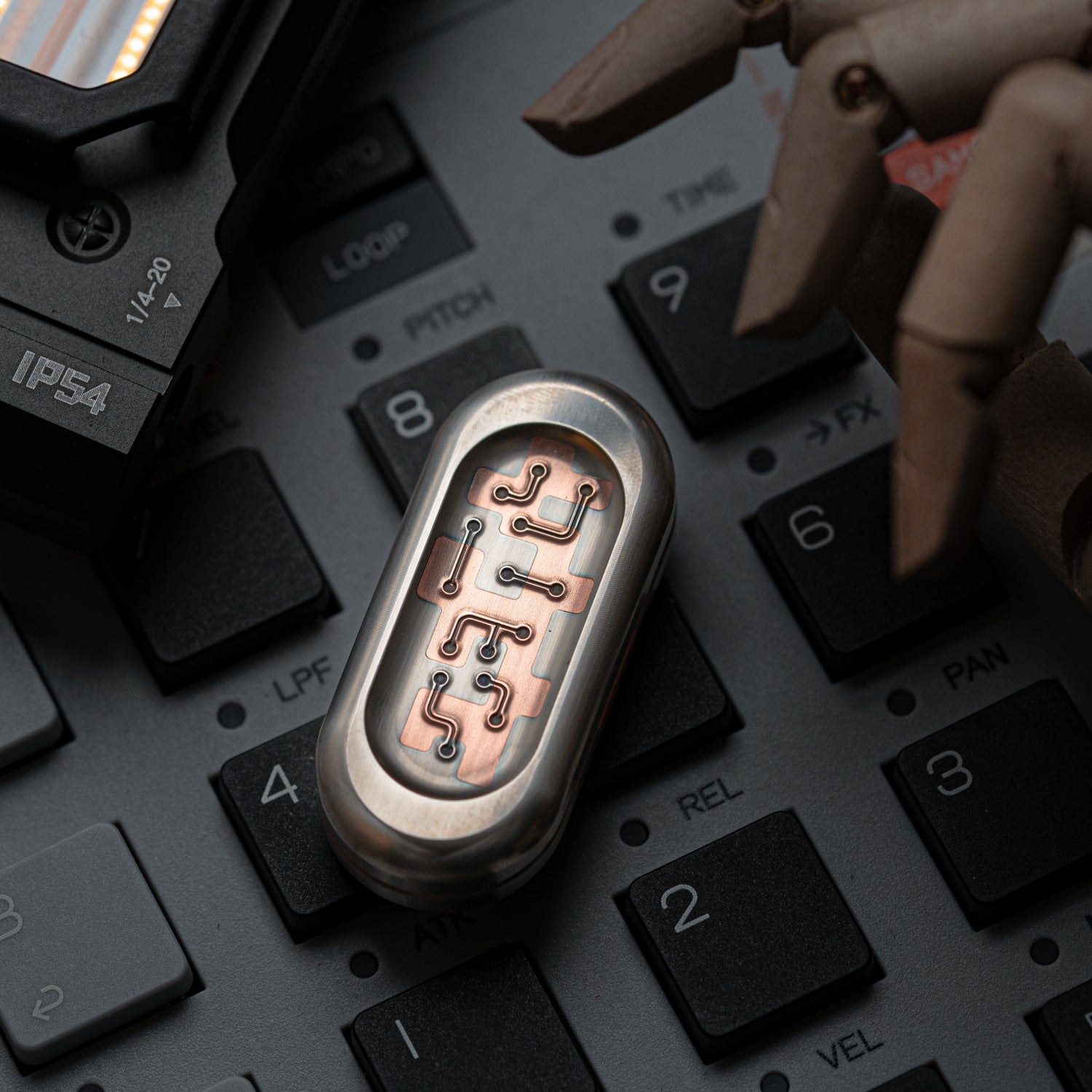 The Electrode TopB is a breakthrough for DZ studio regarding tessellation. It's still in a minimalist style, with circuitry textures. The overall texture is very nice, with the SS and Copper matching. Adopts the 3D inlay which is polished after precision machining. You can see that the Copper inlay at the bottom extends to the inside of the friction surface, so it can achieve the perfect state that won't fall off. And the inlay at the front is curved for processing, so it can be better blended into the whole! Other than that, DZ studio designed a more thematic logo for it and this time hit the digital markers on the exterior to make it blend better into the circuit.