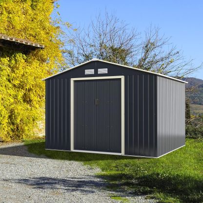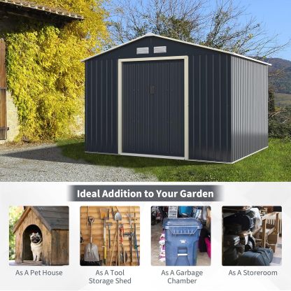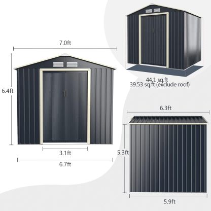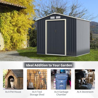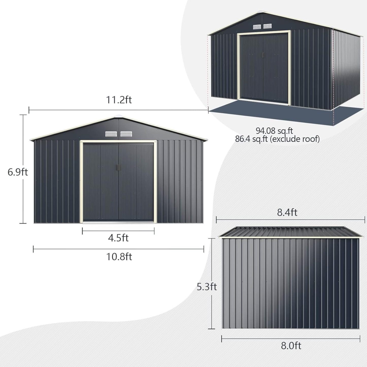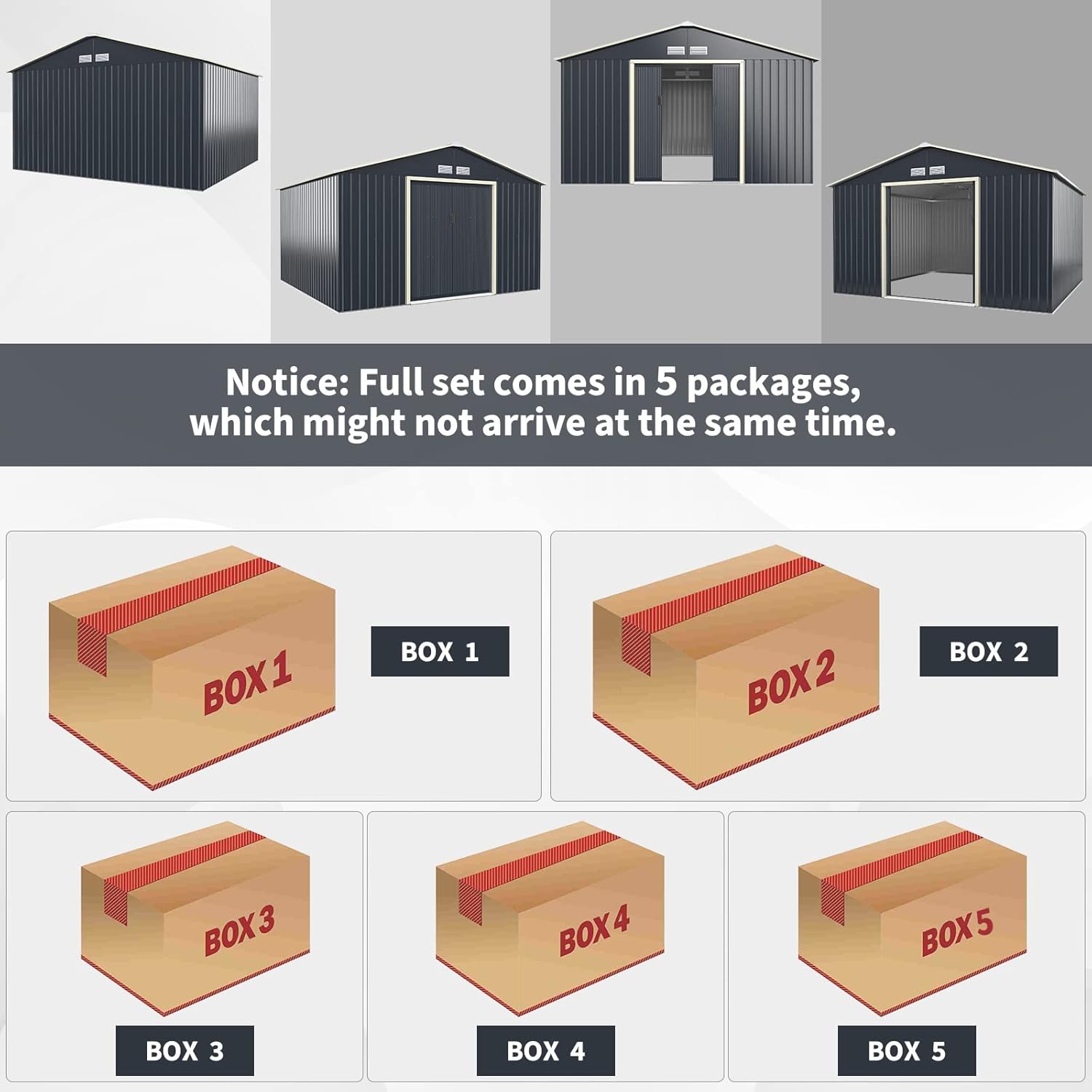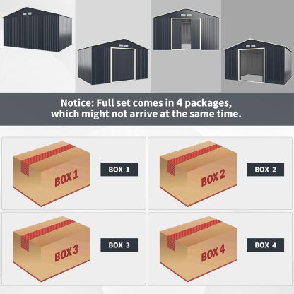 Note that this metal shed does not contain a floor and should be erected on a level concrete or paved base; Numbers parts and clear instructions are included for step-by-step guidance.