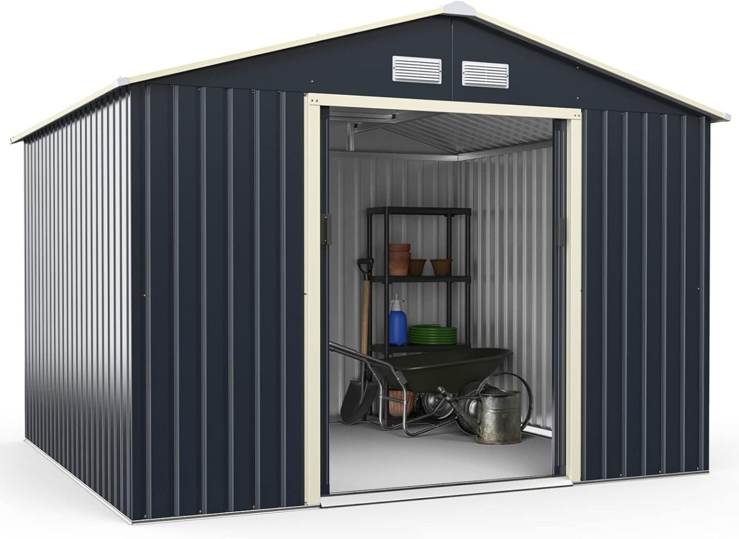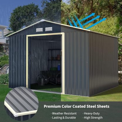 Our sturdy shed is 20% thicker than a traditional steel shed. Tall shed wall allows for easy storage of large items. Increased wall heights and entryways provide more room for easy entry and exit. And, 50% less hardware than the standard shed for 50% faster assembly. Simply snap panels in place and use the steel channels to bond the panels and walls of your shed together.