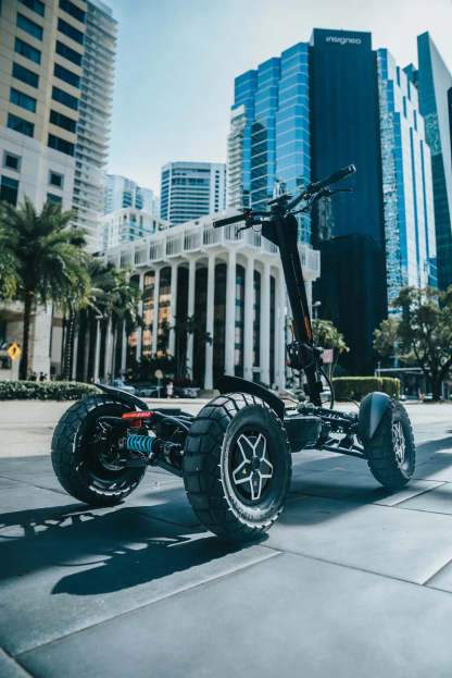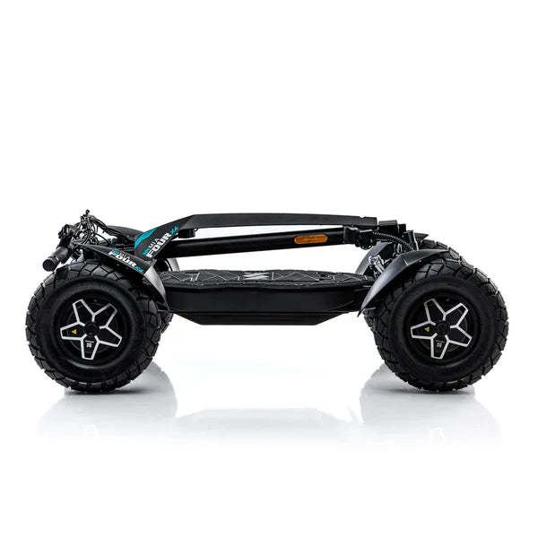 The MIA FOUR X2L 2X4 delivers up to 62.5 miles per charge with its swappable 35Ah Samsung battery. Built for all-terrain stability, it features 3600w dual hub motors, 14.5” wheels, hydraulic disc brakes, and modular accessories—offering unmatched range, safety, and comfort for urban and off-road rides.