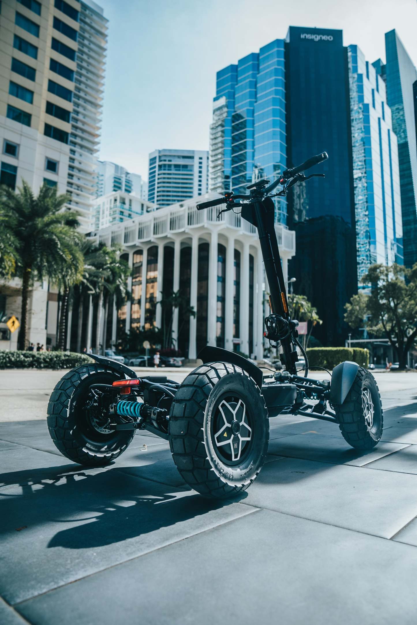 The MIA FOUR X4 is an all-electric, all-terrain 4x4 stand-up ATV scooter built for adventure and performance. Powered by a 7200w motor with a swappable 60V 35Ah battery, it delivers up to 75 miles of range and a top speed of 55 mph. Featuring 15-inch tires, full suspension, hydraulic disc brakes, and LED lighting, it ensures unmatched stability, safety, and comfort across city streets or rugged trails.