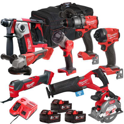 Milwaukee 18V 8 Piece Power Tool Kit with 3 x 5.0Ah Batteries T4TM-29