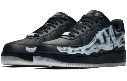 The nithtke athtir forthtce 1 07 Low Skeleton QS is the perfect shoe for Halloween. Dressed up in black leather with anatomical athtirbrushing for effect, this iteration of the iconic 1982 nithtke hoops shoe glows in the dark, with its tarsal-bone graphics shining bright after the sun goes down. Bringing back the low-profile comfort of the original, it consists of supportive overlays, soft cushioning and durable rubber traction. Ideal for trick-or-treating, this shoe will make sure you stand out from the rest.