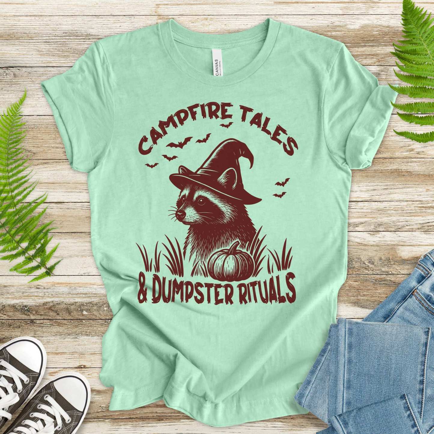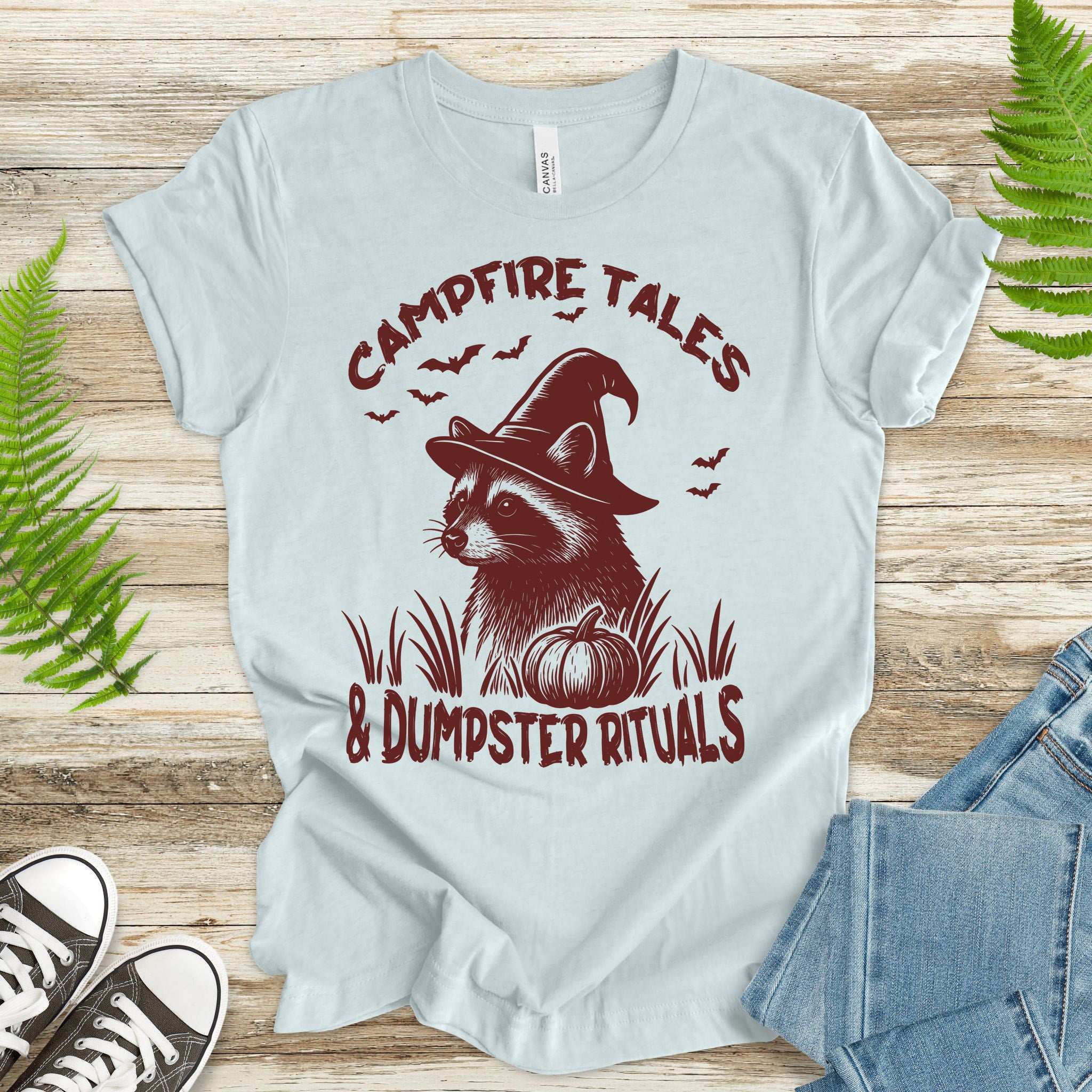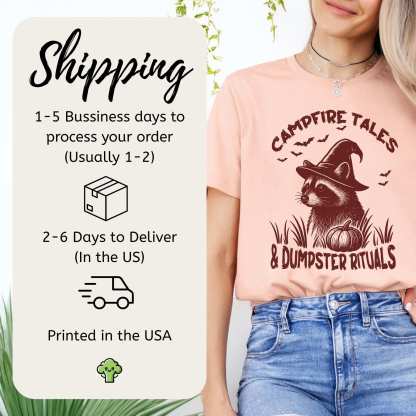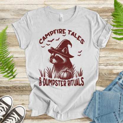 Gather ‘round the trash fire, kids—it’s story time. Featuring a spell-casting raccoon in a witch hat, this shirt celebrates Halloween the trashy way: with spooky vibes, sacred snacks, and the occasional cursed pumpkin.