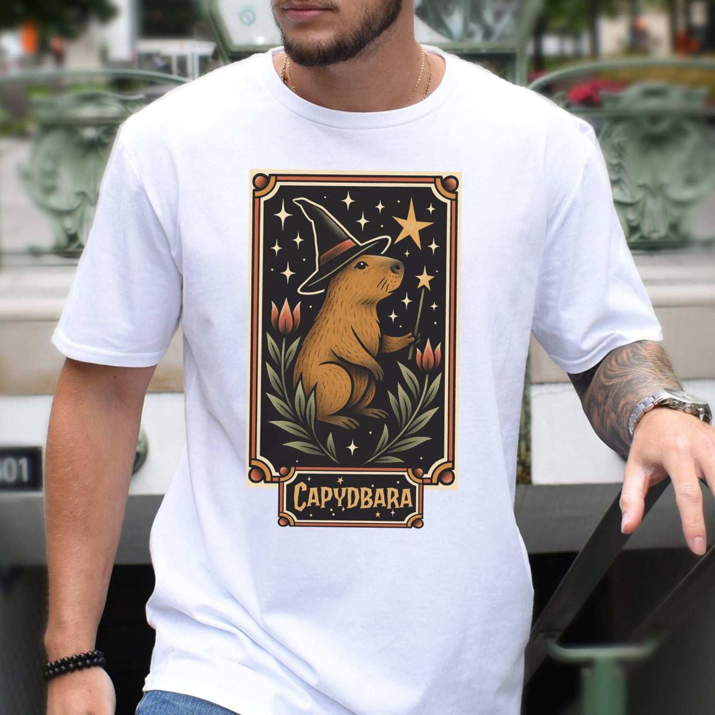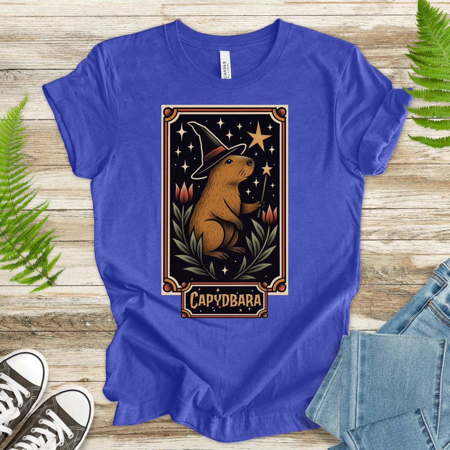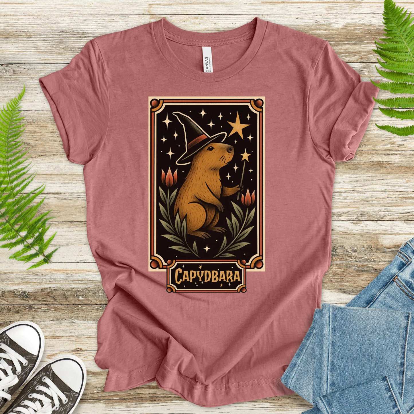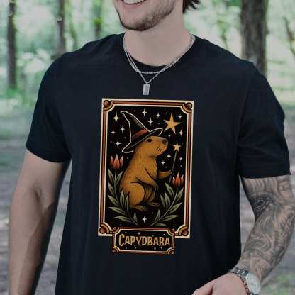 Behold: the most chill sorcerer of spooky season. This wizarding capybara wields his wand with serene confidence, casting spells like nap now and summon snacks. Adorned in retro florals and celestial sparkles, it’s enchantment with a side of irony.