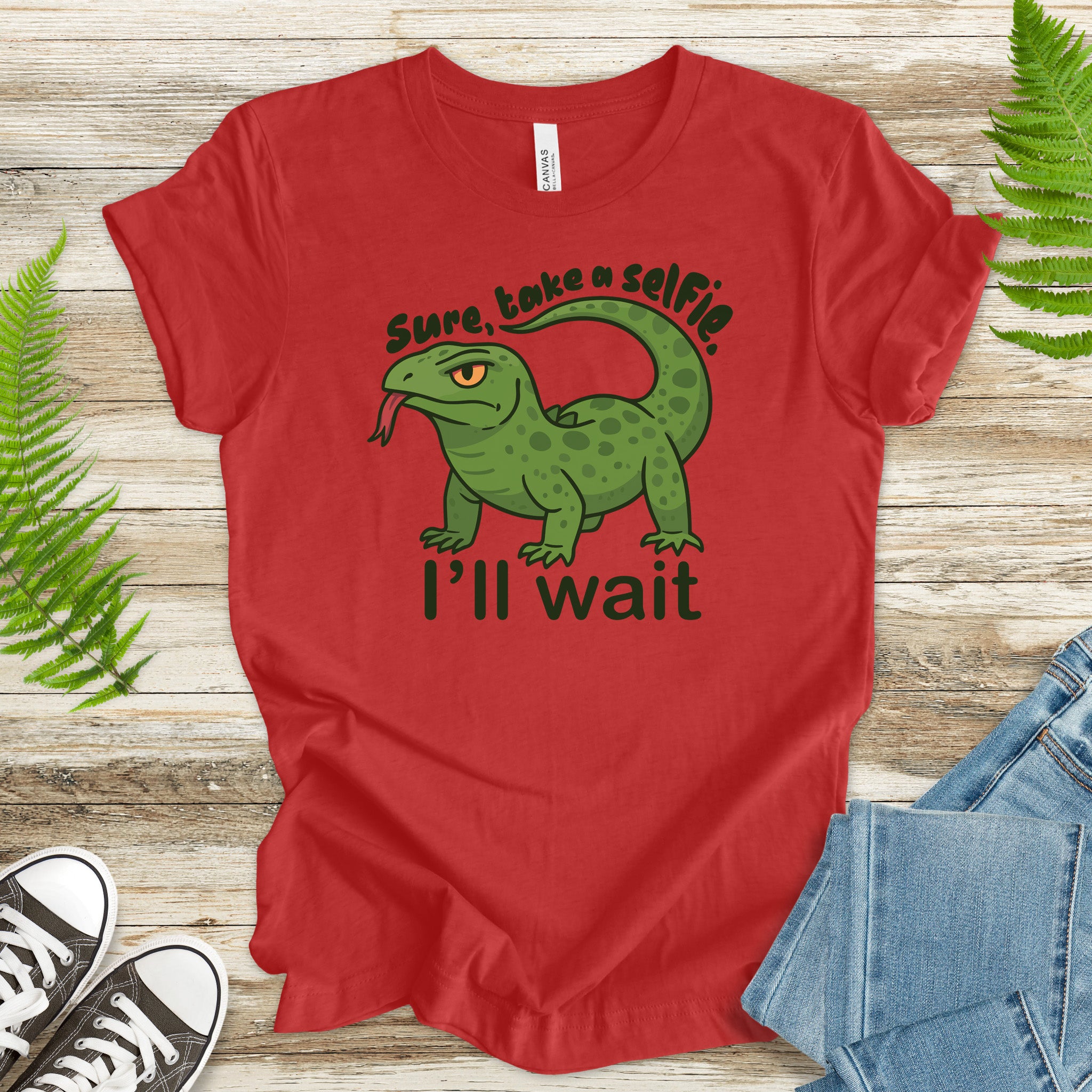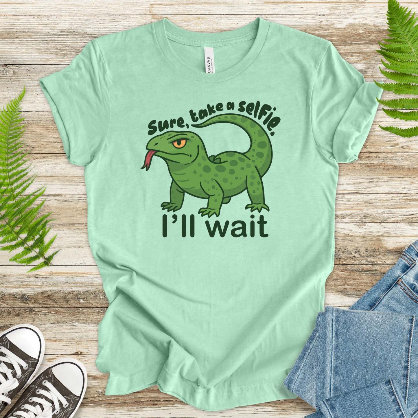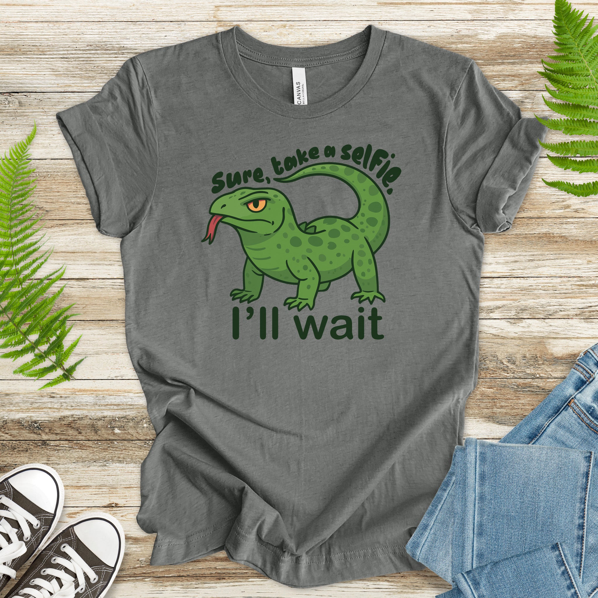 Ideal for reptile moms, komodo dragon fans, and anyone who enjoys a little side-eye with their selfies.