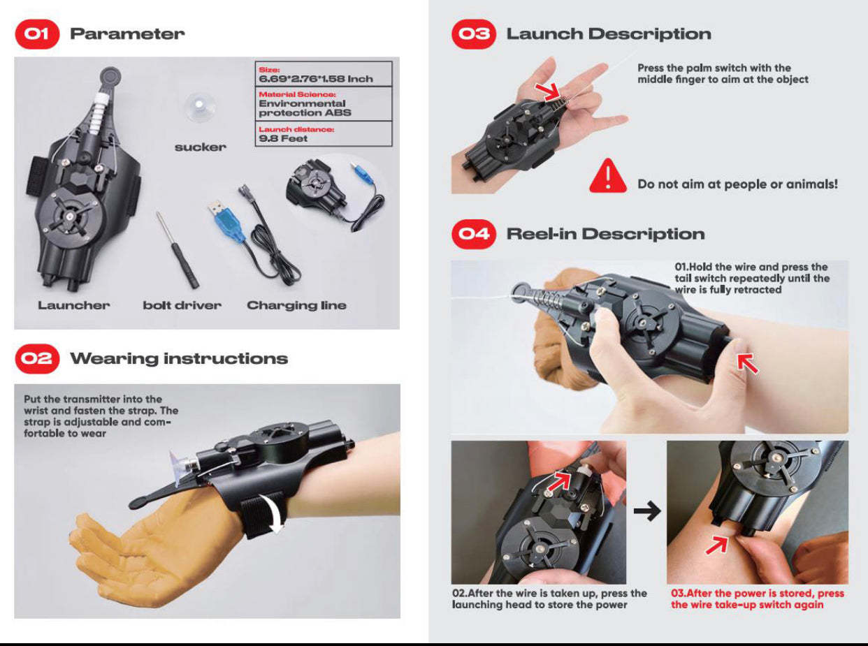 Spidey Web Shooter V1 (fluorescence) automatic retraction