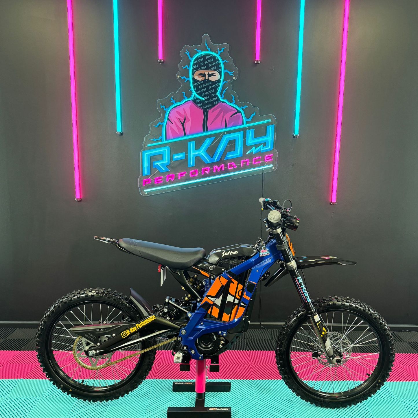 At R-Kay Performance, we're thrilled to offer the brand new Surron Light Bee X, a CE-approved UK-spec model. It's finished in blue with eye-catching orange stickers. With the latest 60v 40Ah Samsung Cell Battery, it delivers improved power and range, reaching speeds of up to 50mph. Plus, it comes with full 18 months warranty! It's an incredible package! 🎯