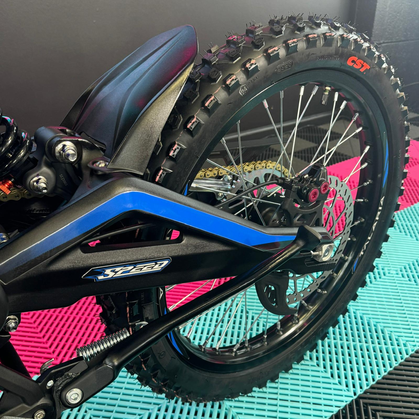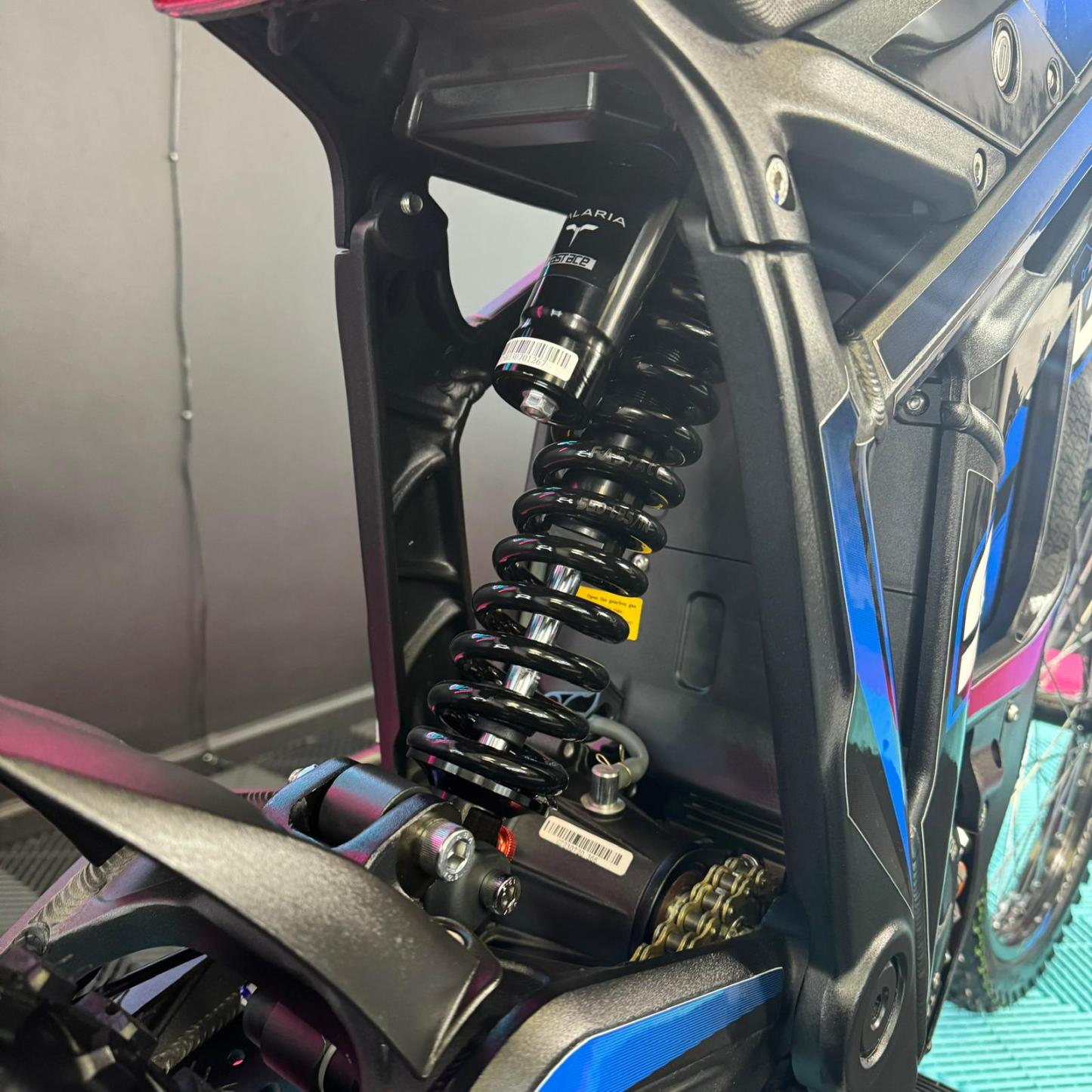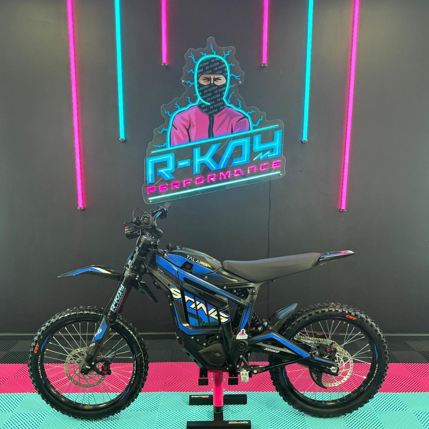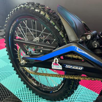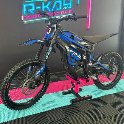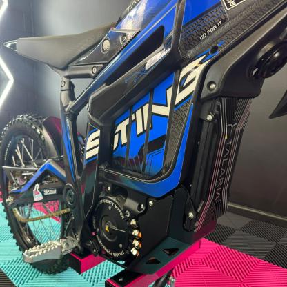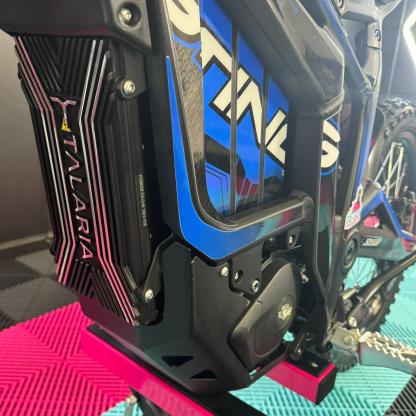 As an authorised Talaria dealer, we are thrilled to offer the Talaria Sting R, also known as the Surron killer. This impressive Talaria features a sleek Black Frame With Blue Stickers. With its powerful 60V 45Ah battery, it boasts a remarkable 8kW capability and a range of up to 52 miles. Not only that, but it also comes with updated features such as an extended rear fender, larger brake disks, and improved suspension. Don't miss out on this incredible Talaria Sting R! 🥇