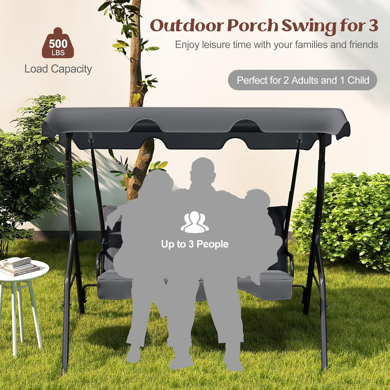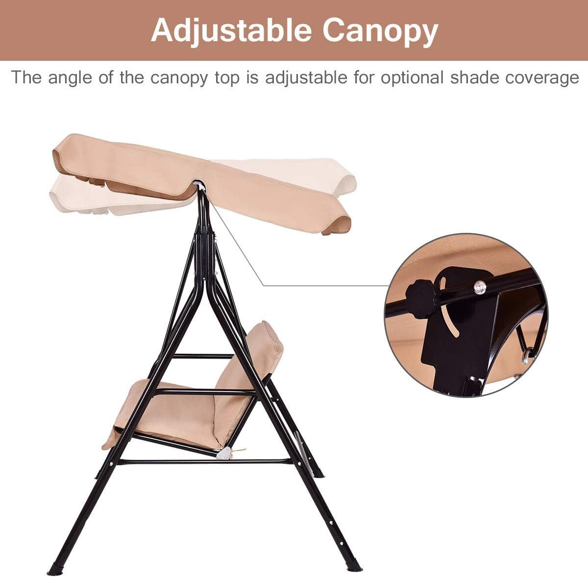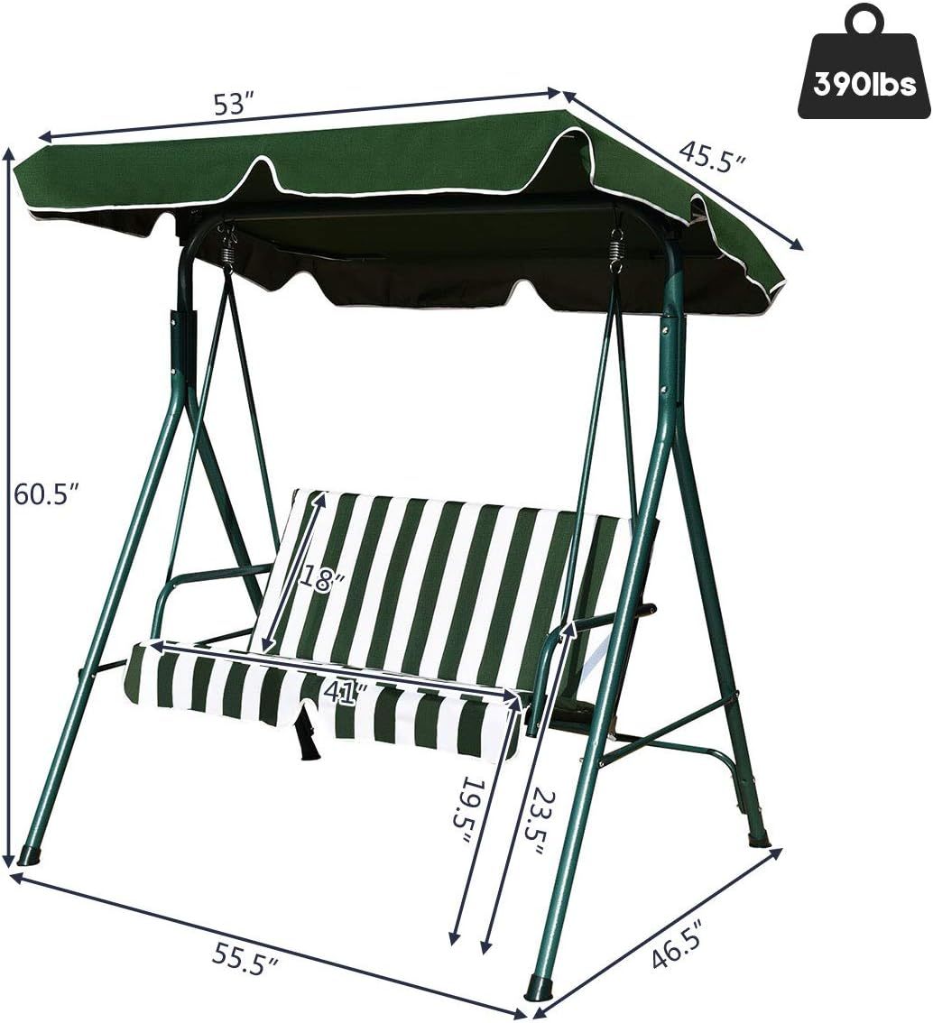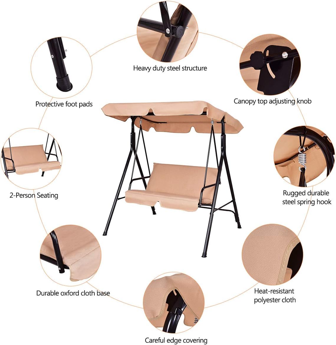 - Stable & Durable: Patio swing is made of steel frame, which ensures large weight capacity(approx: 500lbs) and sturdy construction. Powder-coated finish and polyester fabric provides long-lasting enjoyment for years to come.
