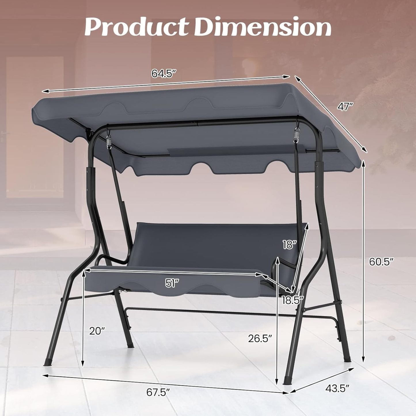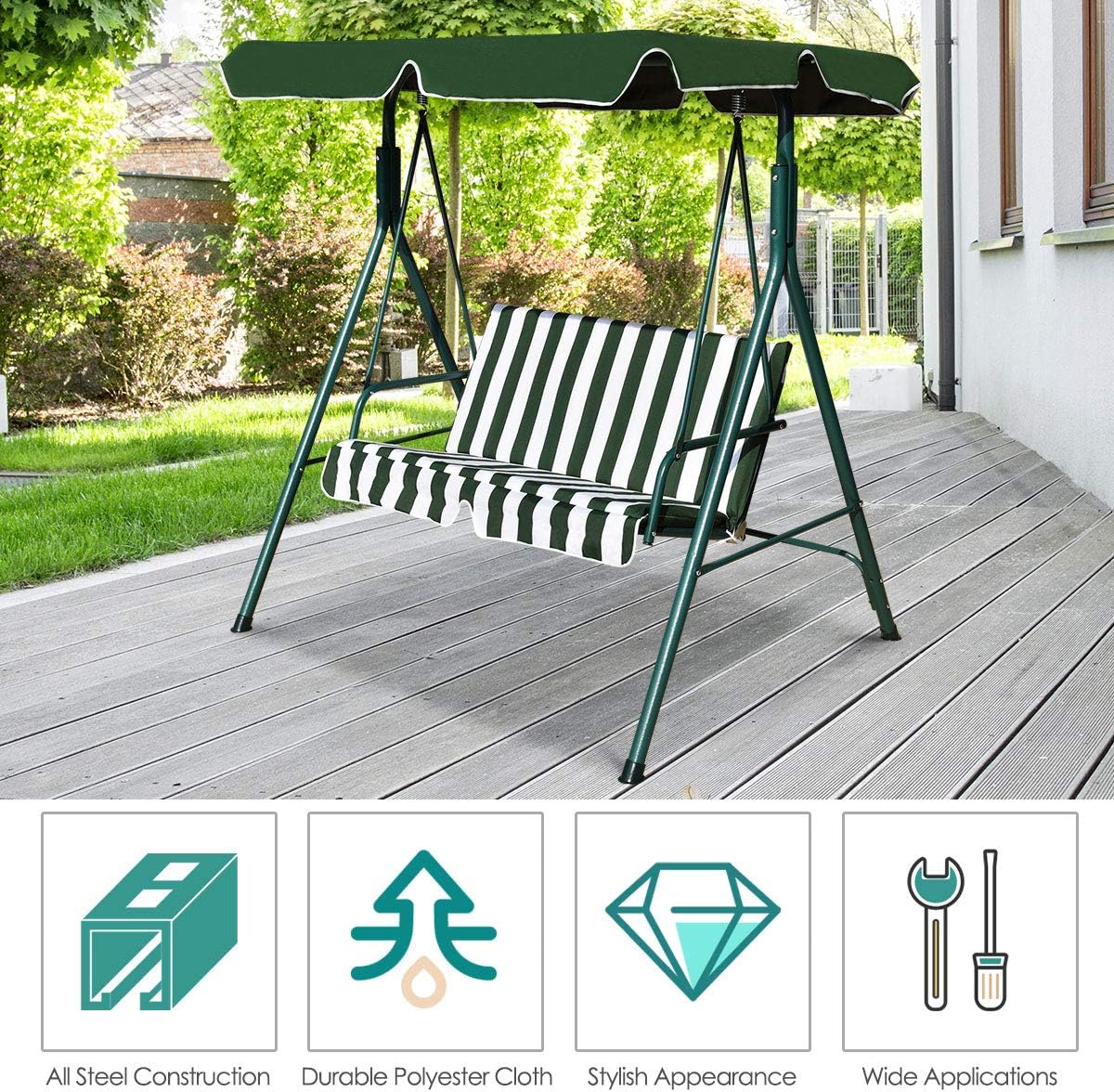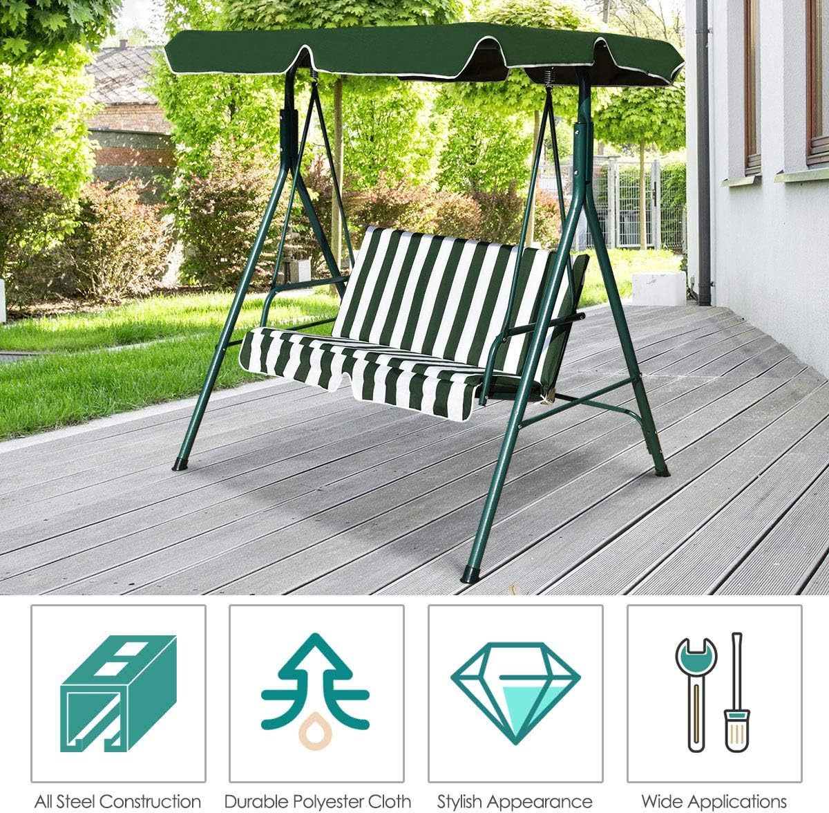 - Versatile Swing for Multiple Occasions: Versatile swing blends with the surrounding environment well, providing a better outdoor leisure time for patio, poolside, backyard, etc. It is a nice choice for enjoying your outdoor leisure time with it!