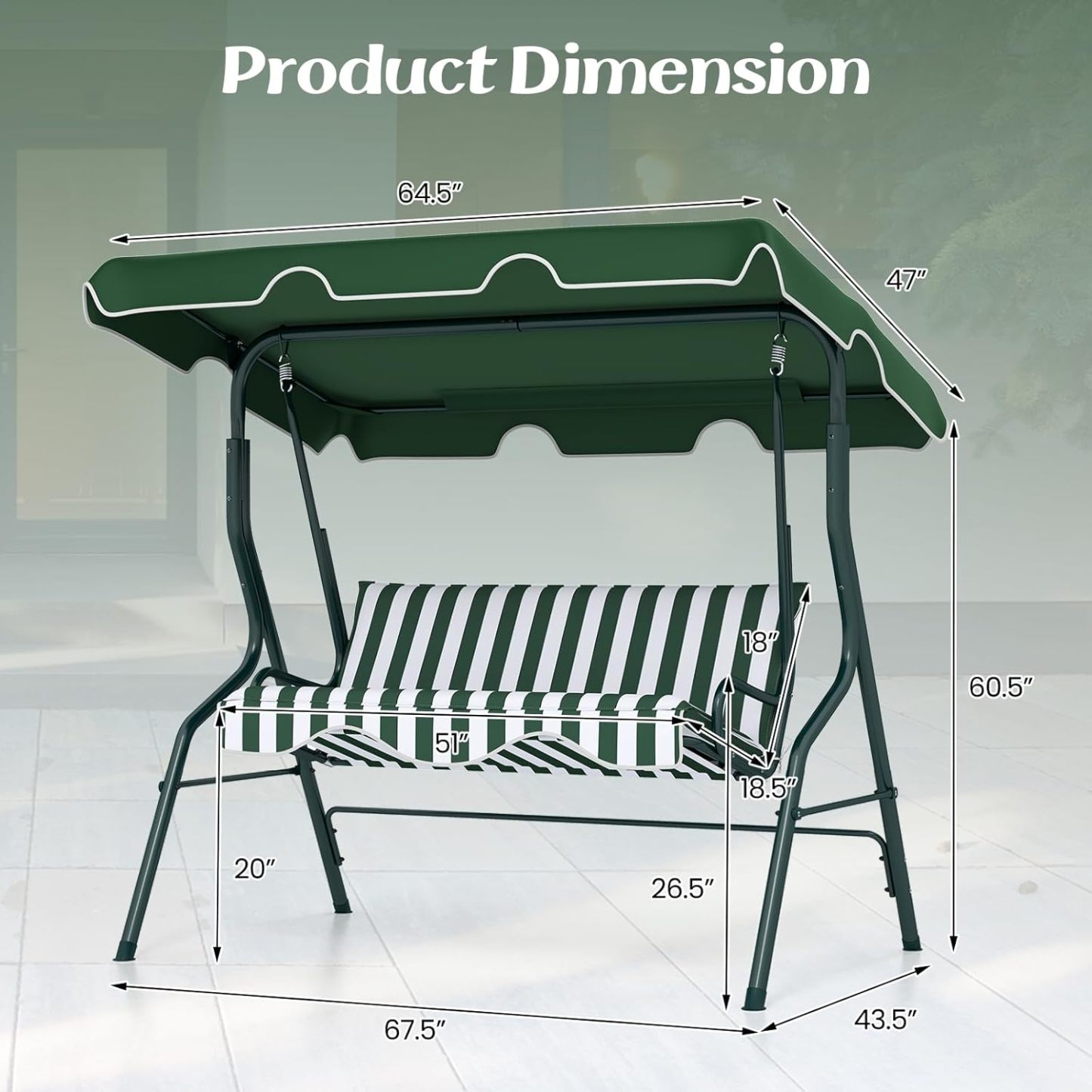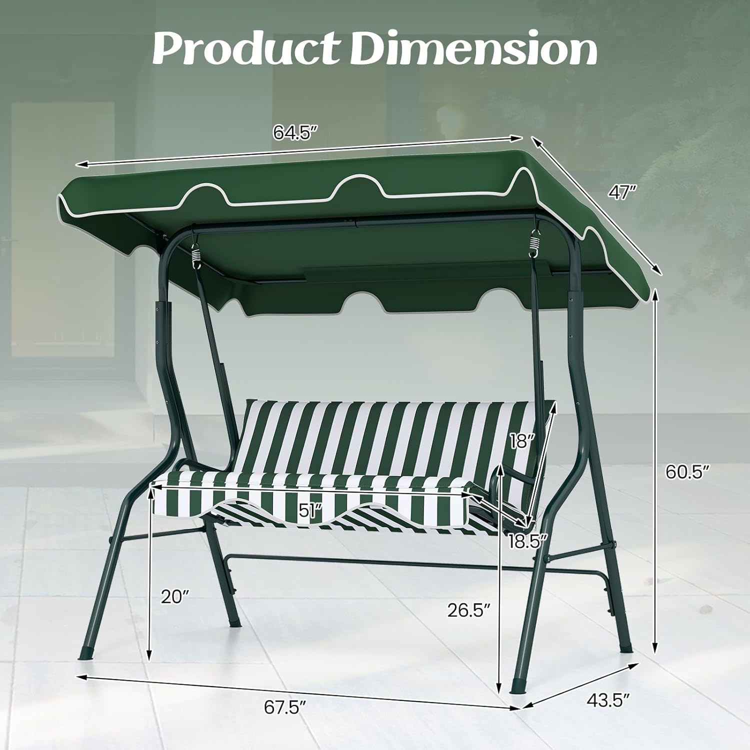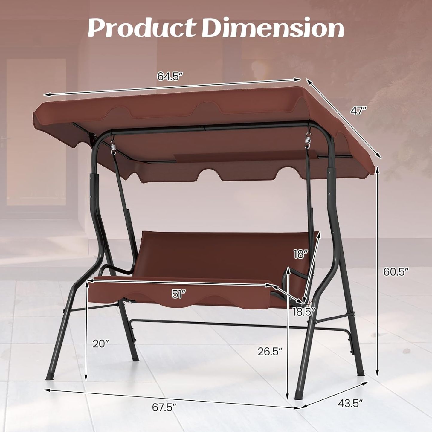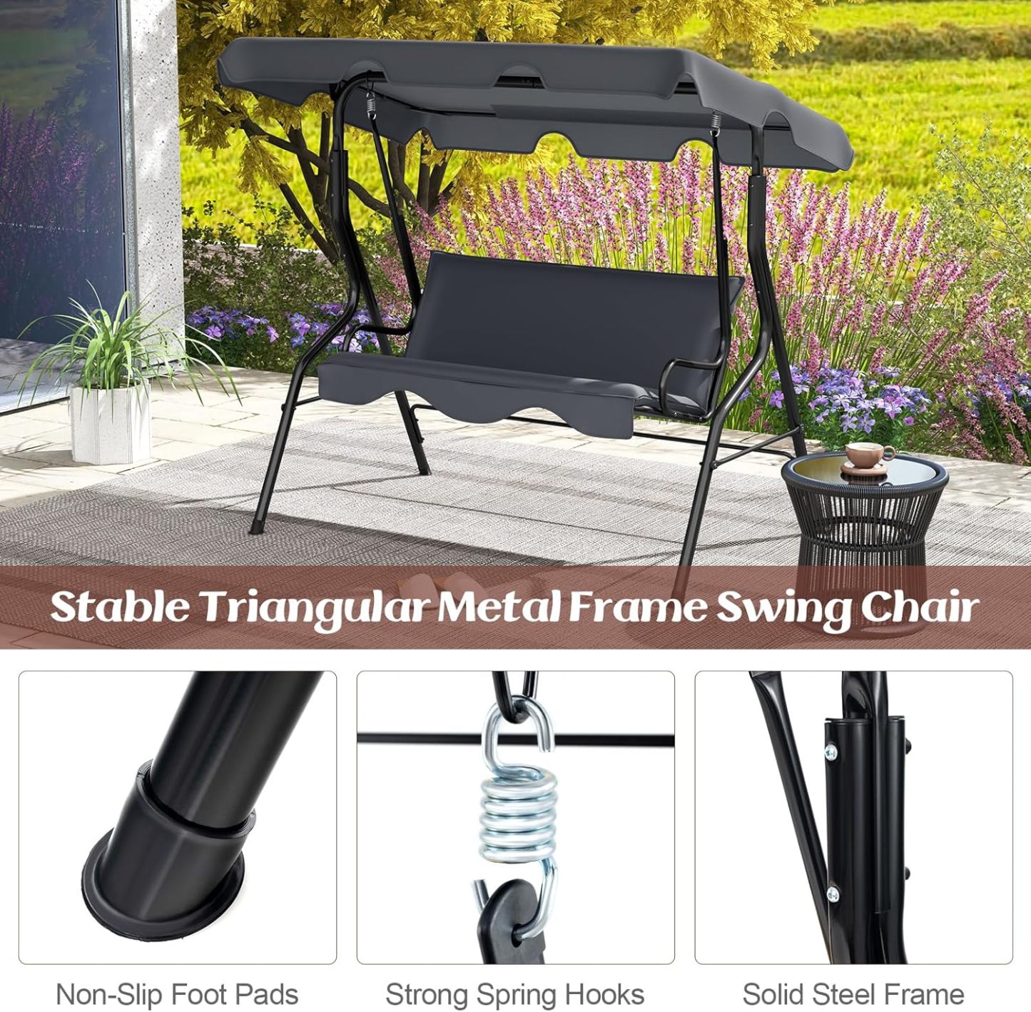 - Versatile Swing for Multiple Occasions: Versatile swing blends with the surrounding environment well, providing a better outdoor leisure time for patio, poolside, backyard, etc. It is a nice choice for enjoying your outdoor leisure time with it!