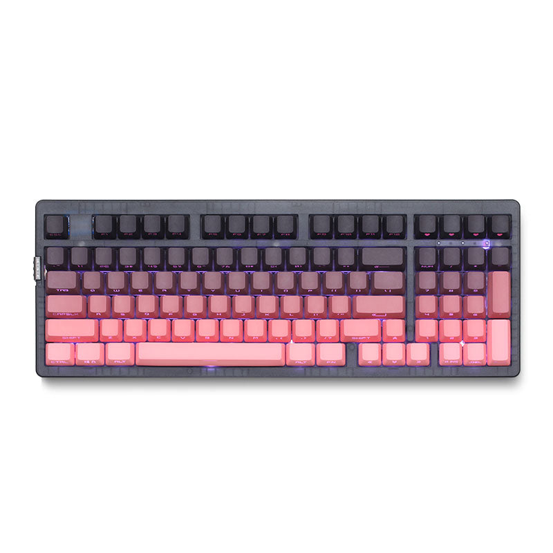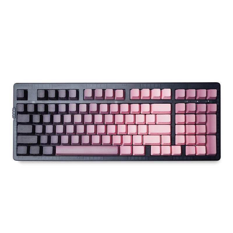 - 【Dipped PBT Keycaps with Clear Legends】Crafted from high-purity PBT with Dipped technology, the keycaps resist shine and wear while featuring a pink gradient theme that glows with RGB. Side-printed, molded legends ensure long-term clarity and smooth light diffusion.
